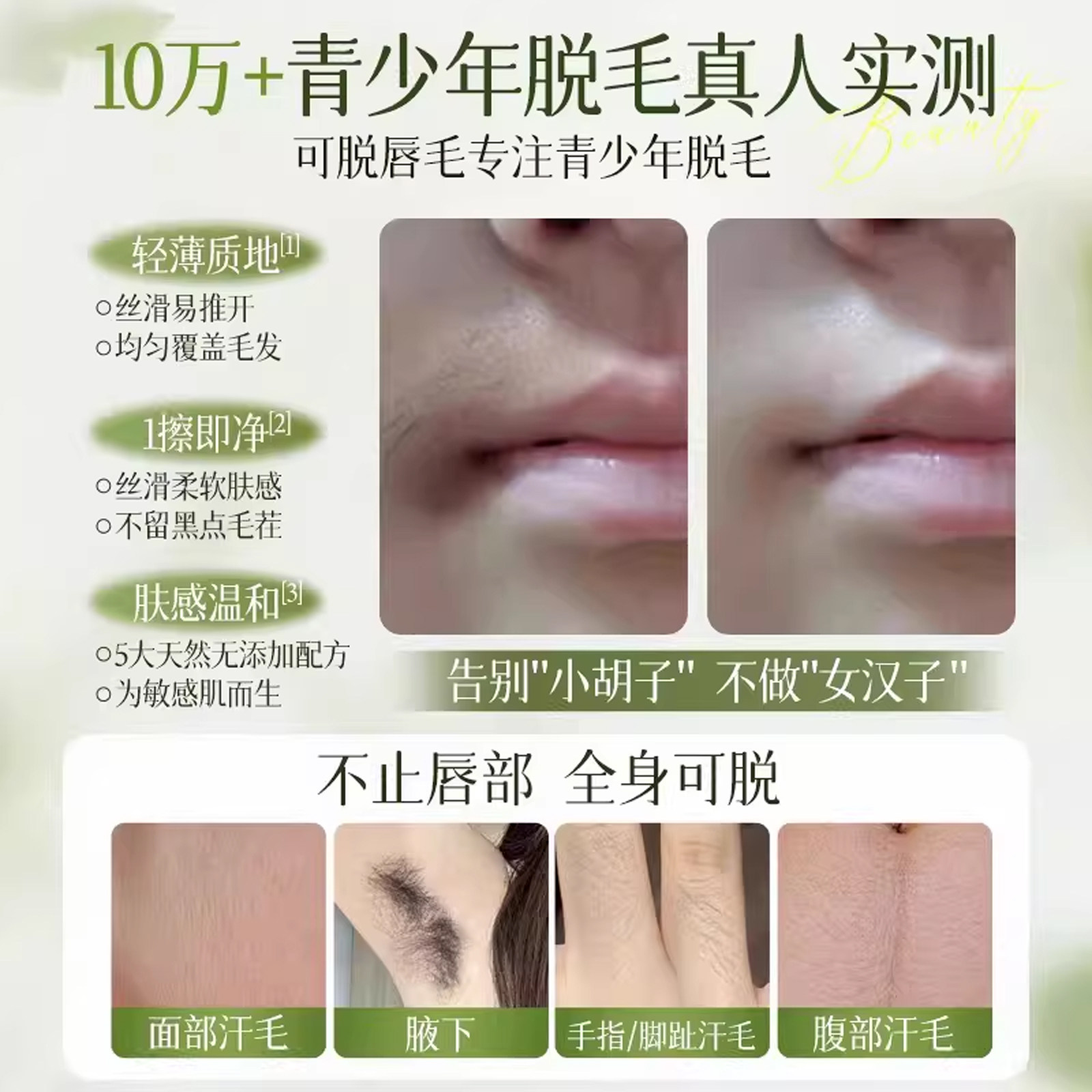 青少年脱毛膏学生专用腋下腿毛女士全身唇部胡子男女可用黑点唇毛