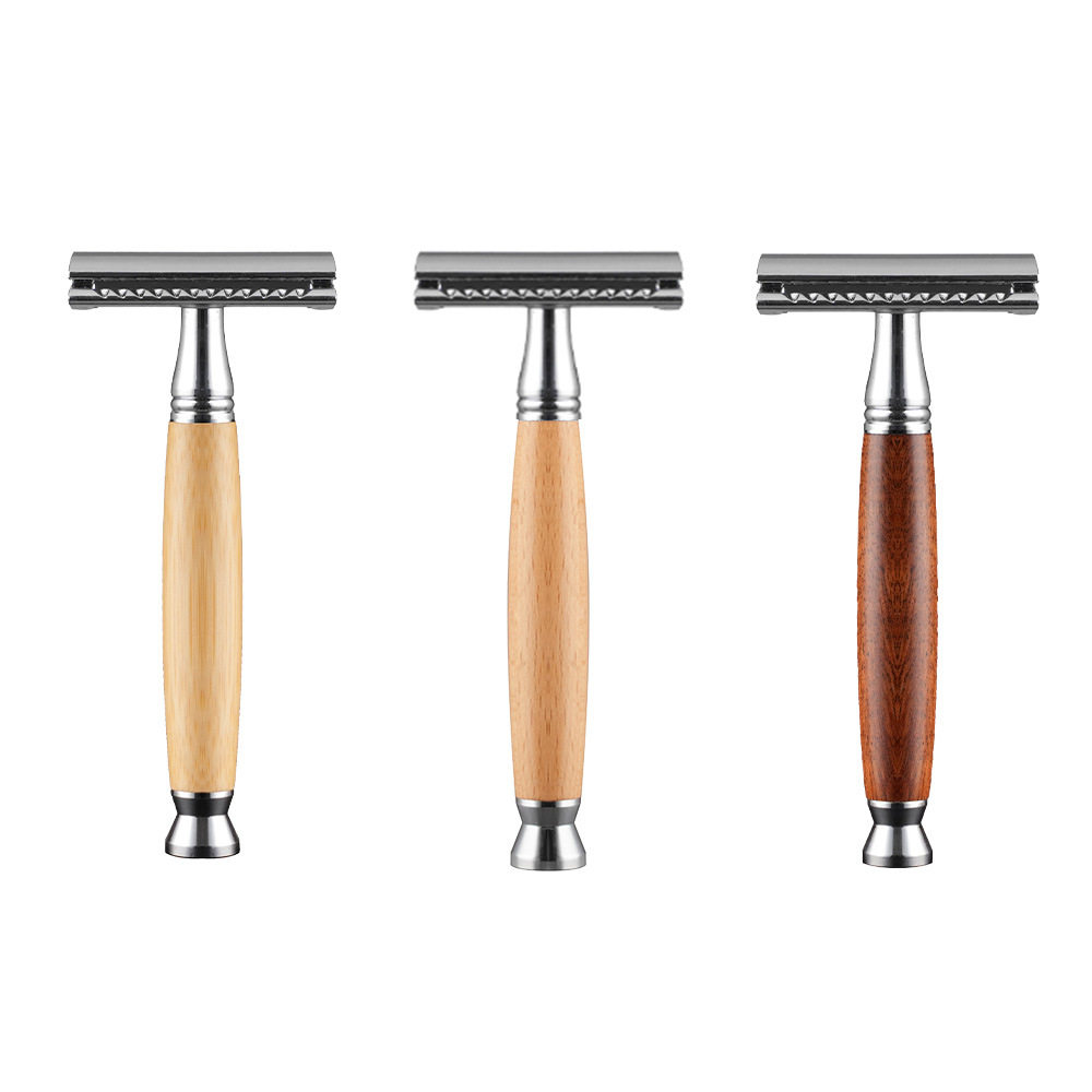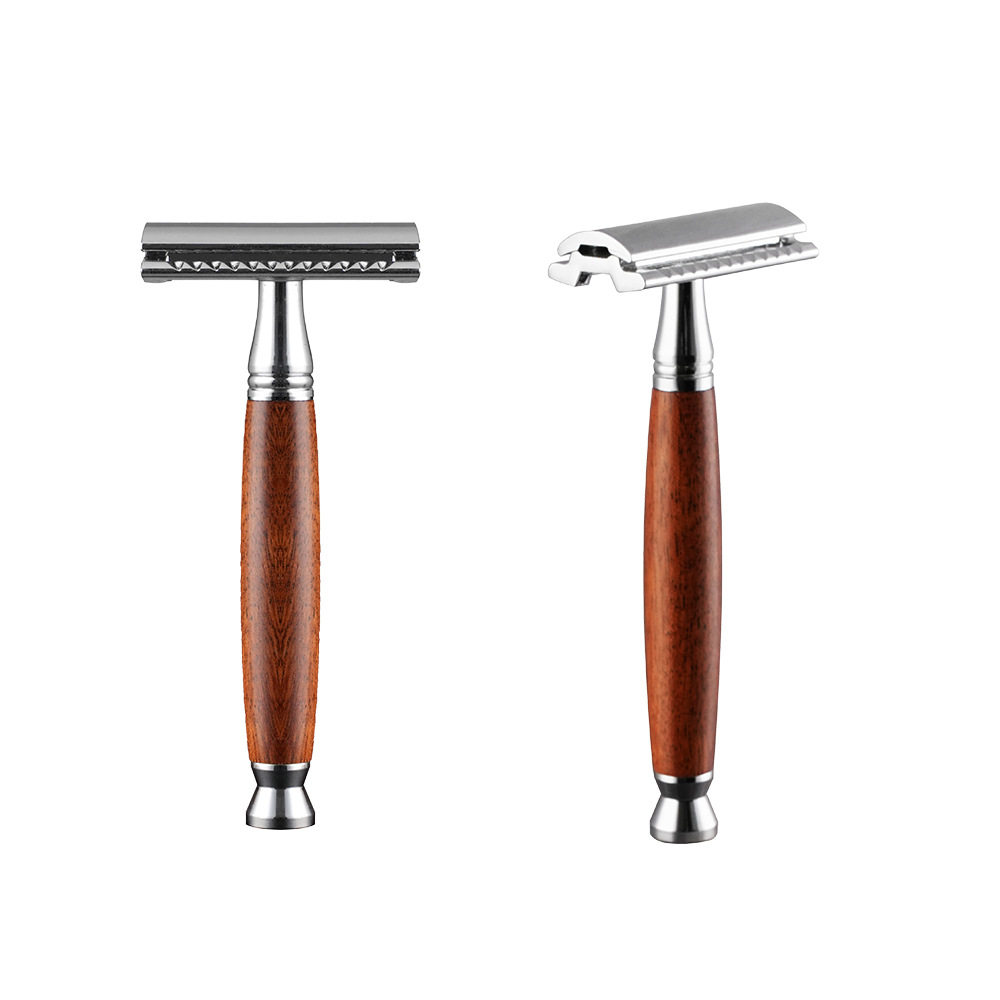 老式手动剃须刀传统刮胡刀双面剃须刀实木主杆配锌合金金属头