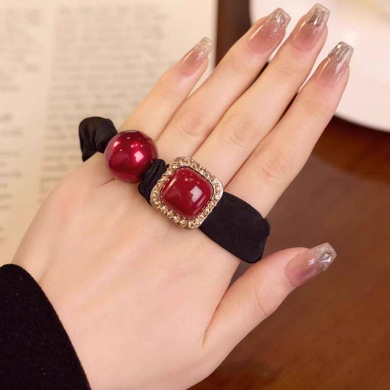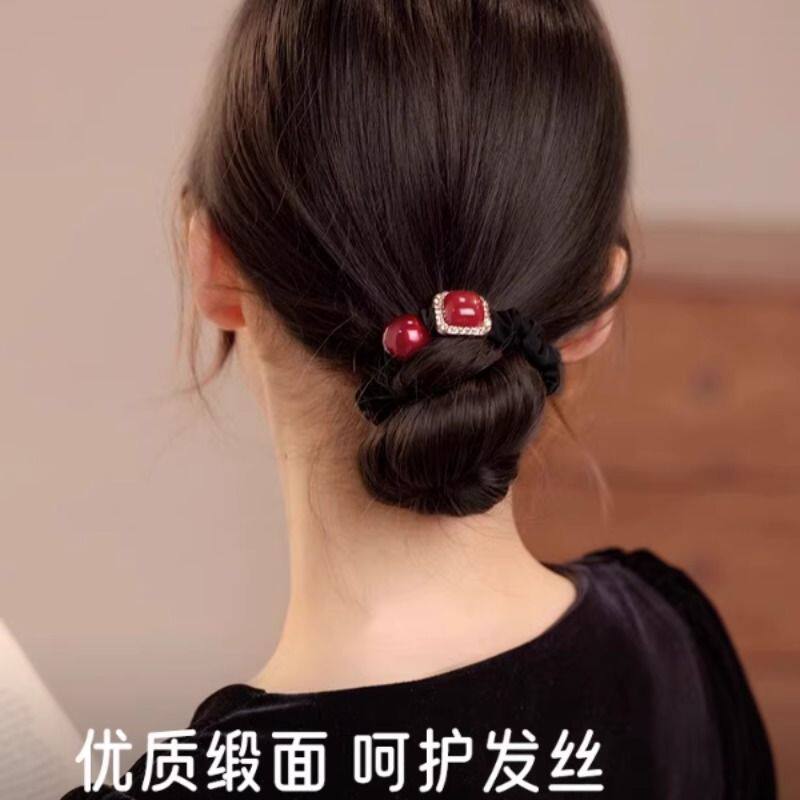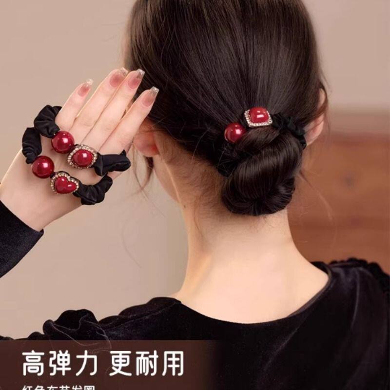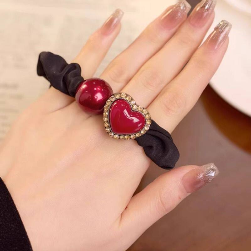 红色爱心发圈女韩版高级感水钻红色头绳小肠圈扎丸子头绳新年发饰