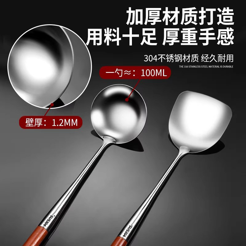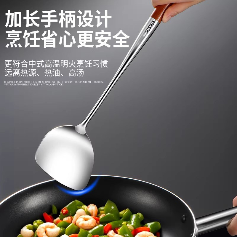 304不锈钢炒勺炒铲锅铲家用长柄汤勺分菜勺厨师专用炒菜铲子