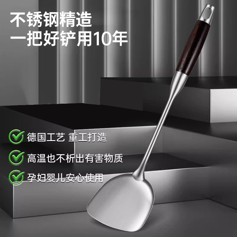 德国锅铲家用铲子炒菜不锈钢煎铲加厚汤勺漏勺厨具炒勺套装铁锅铲
