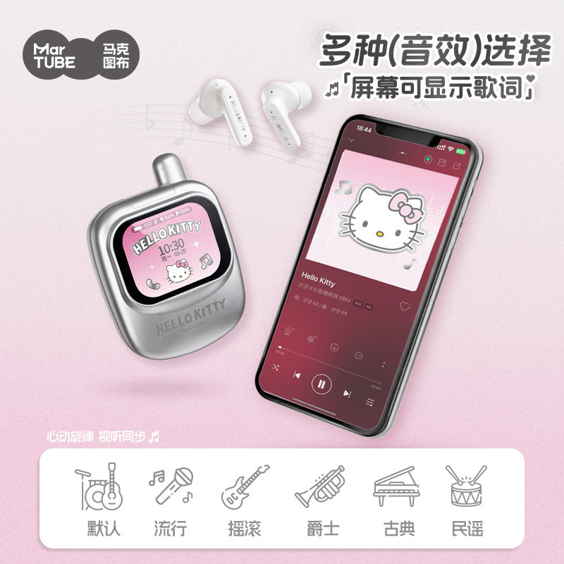 马克图布HelloKitty耳机带屏幕智能触屏KT蓝牙耳机女生入耳式降噪