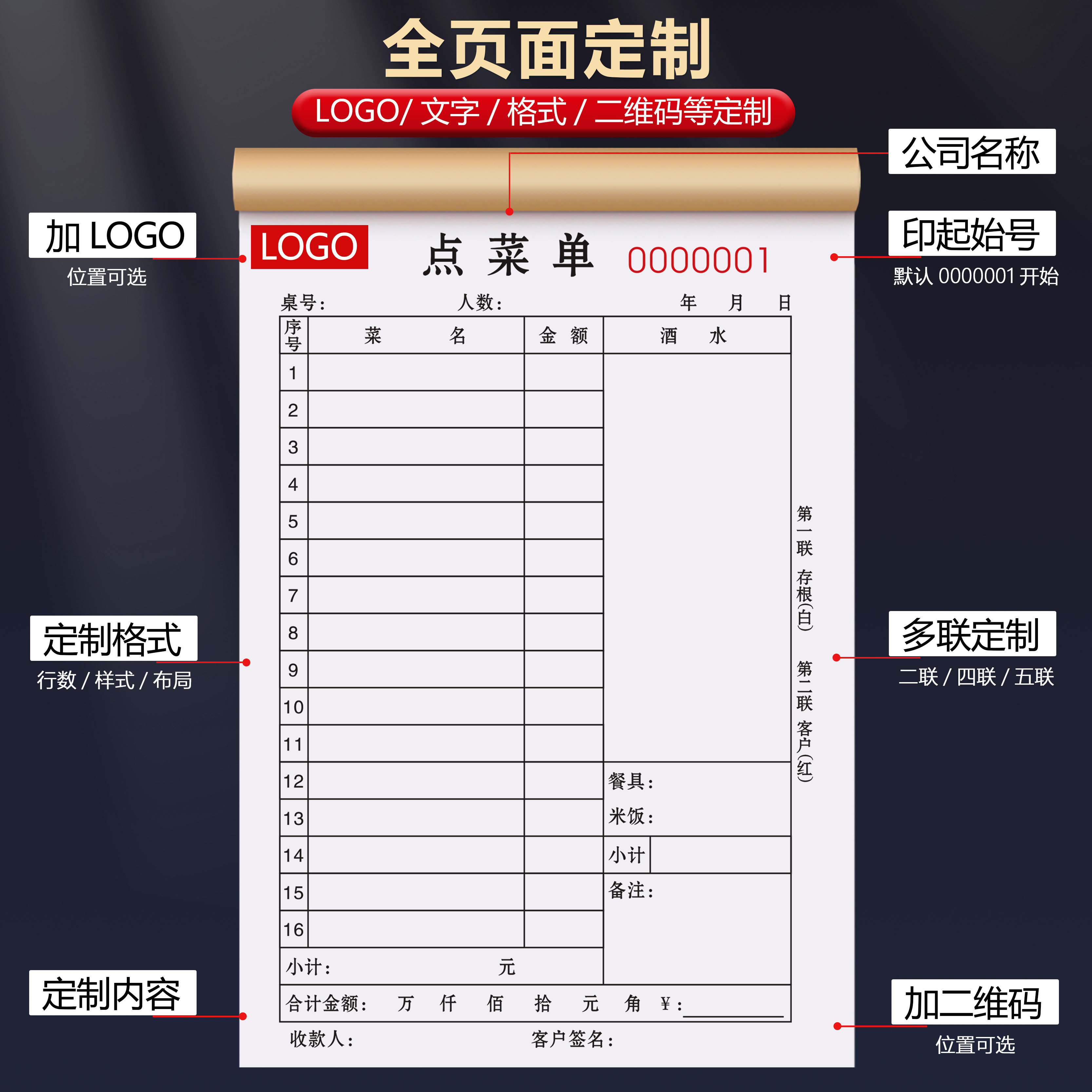 点菜单定制三联酒店饭店餐厅餐馆点餐记账本二联烧烤店手写菜单本