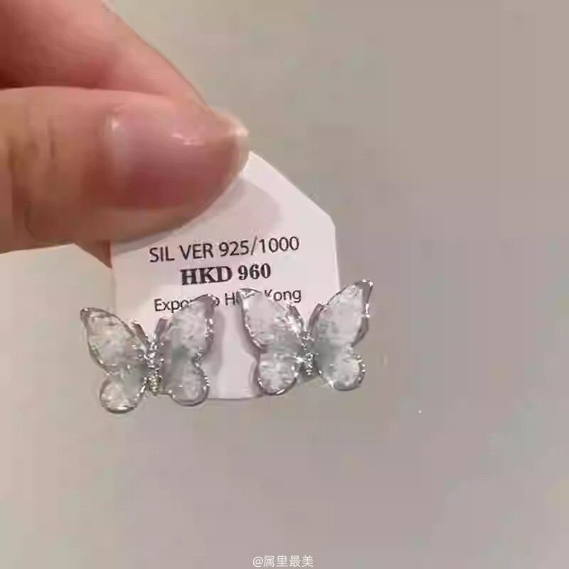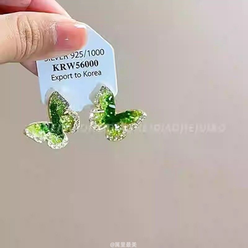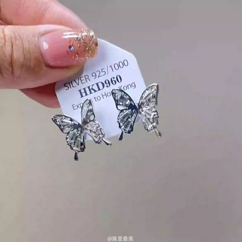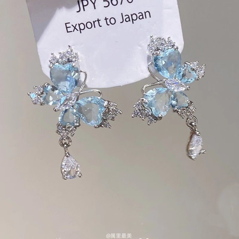 春夏灵动碎石蝴蝶蓝色锆石耳钉仙女气质清冷设计精致高级耳环耳饰