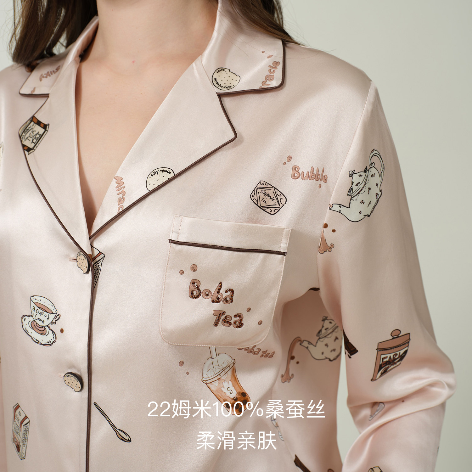SILKY MIRACLE22姆米真丝睡衣套装Boba Tea桑蚕丝家居服可外穿