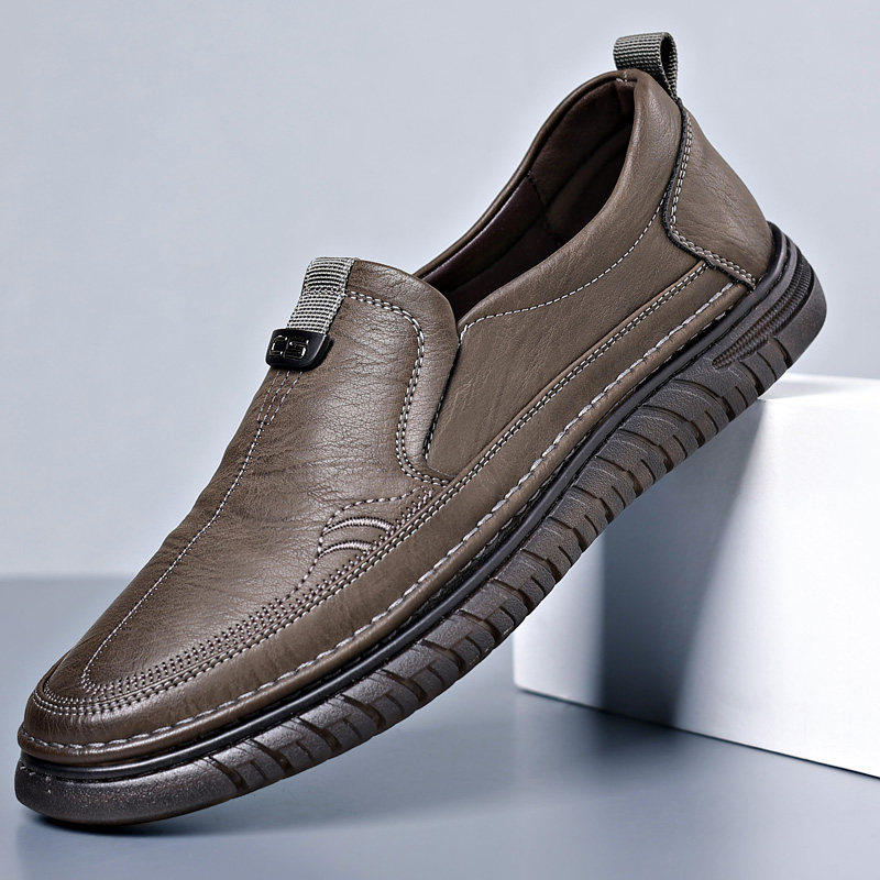 新款休闲皮鞋男真皮韩版潮流商务厚底轻质橡胶发泡底一脚蹬乐福鞋
