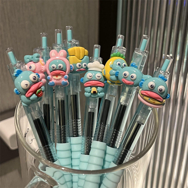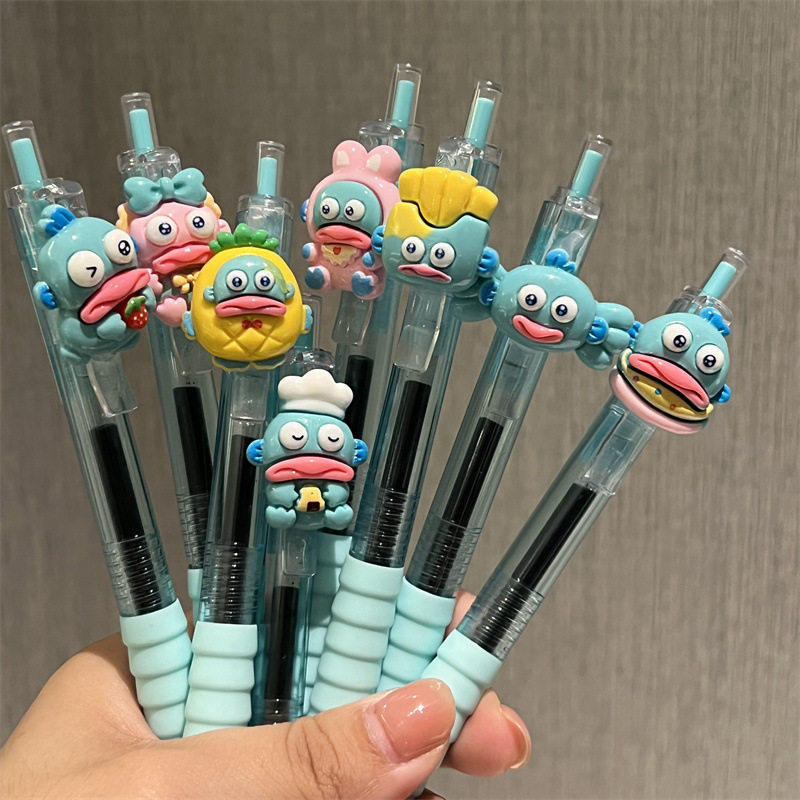 个性创意高颜值学生用刷题笔按动笔卡通可爱少女心丑鱼汉顿中性笔