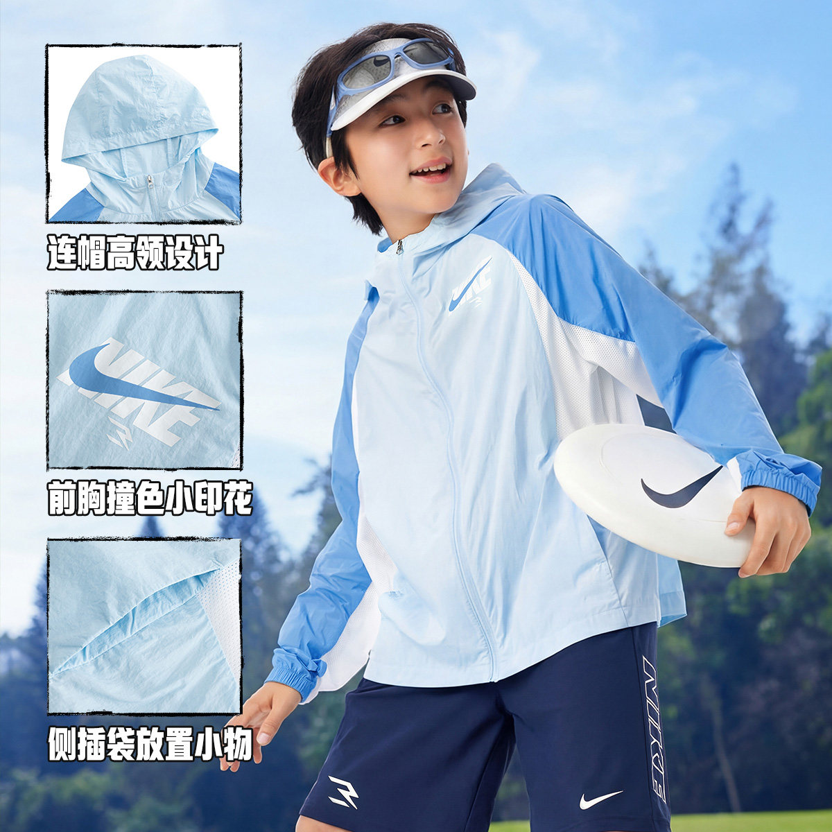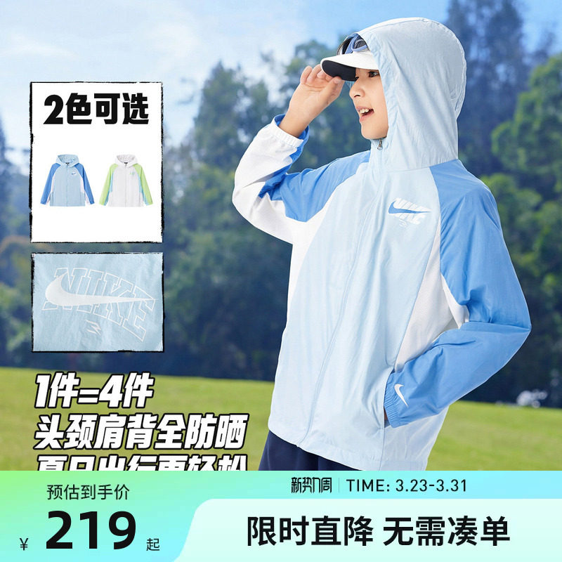 Nike 3brand儿童防晒衣男童凉感外套皮肤衣夏季新款大童遮阳风衣