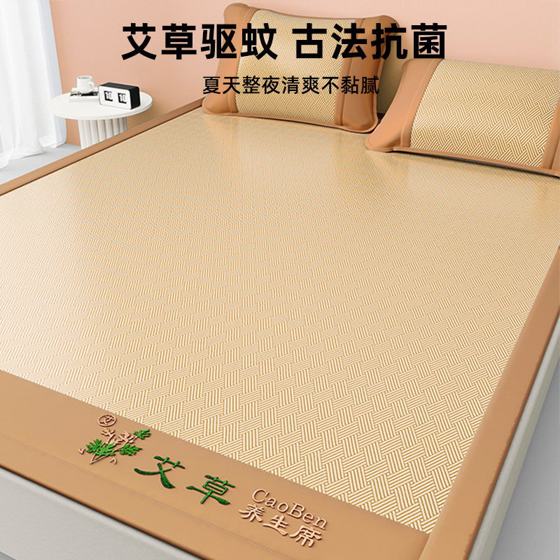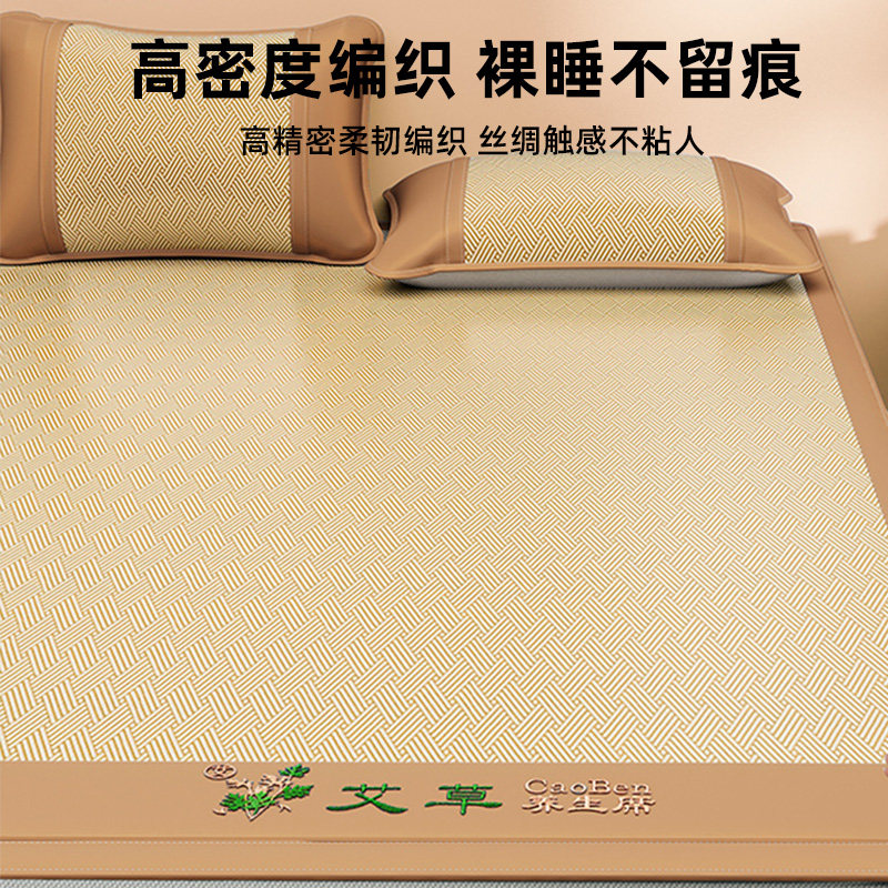 夏季冰丝凉席三件套2025新款艾草藤席子可机洗学生宿舍空调席竹席