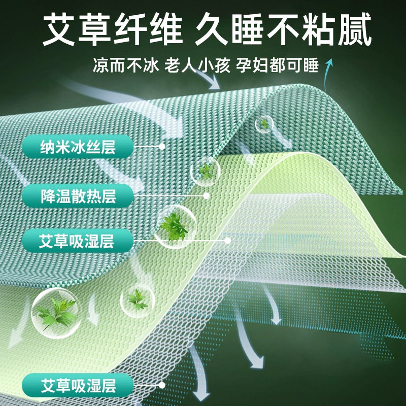 艾草冰丝凉席冬夏两用席子夏季草席竹席藤席单人学生宿舍2025新款