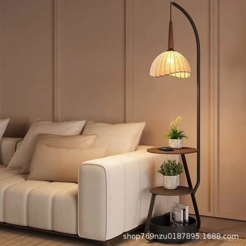 落地灯客厅沙发边法式复古置物架茶几灯卧室床头柜氛围灯一体台灯