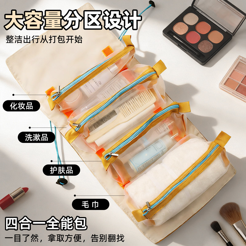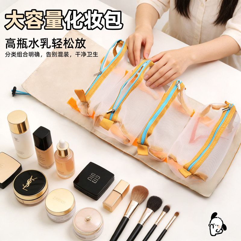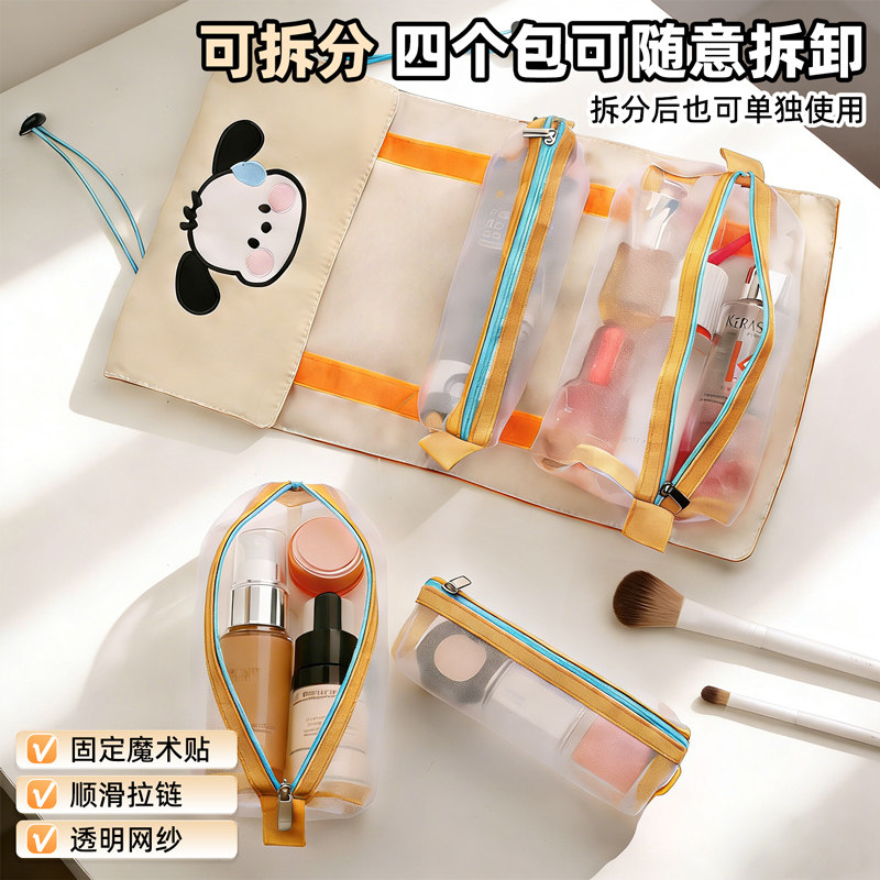 卡通四合一小狗化妆包收纳包洗漱包外出便携女大容量分区收纳旅行