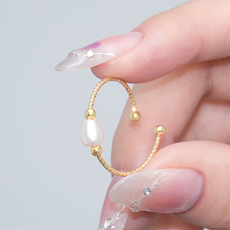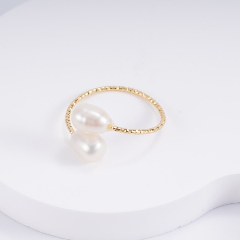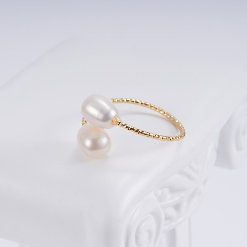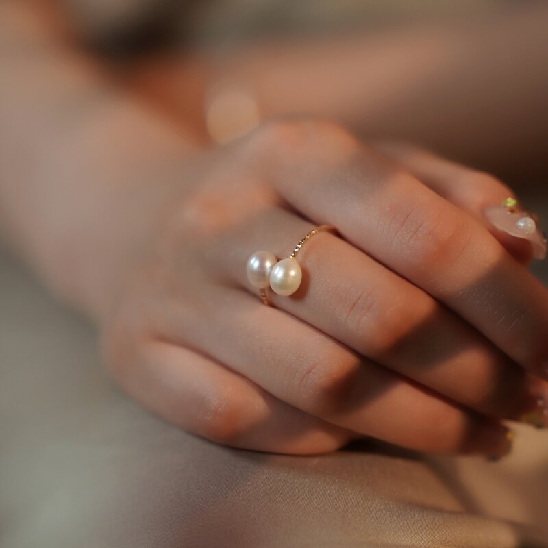 淡水珍珠可调节双生戒 电镀18K金戒指 时尚简约食指戒