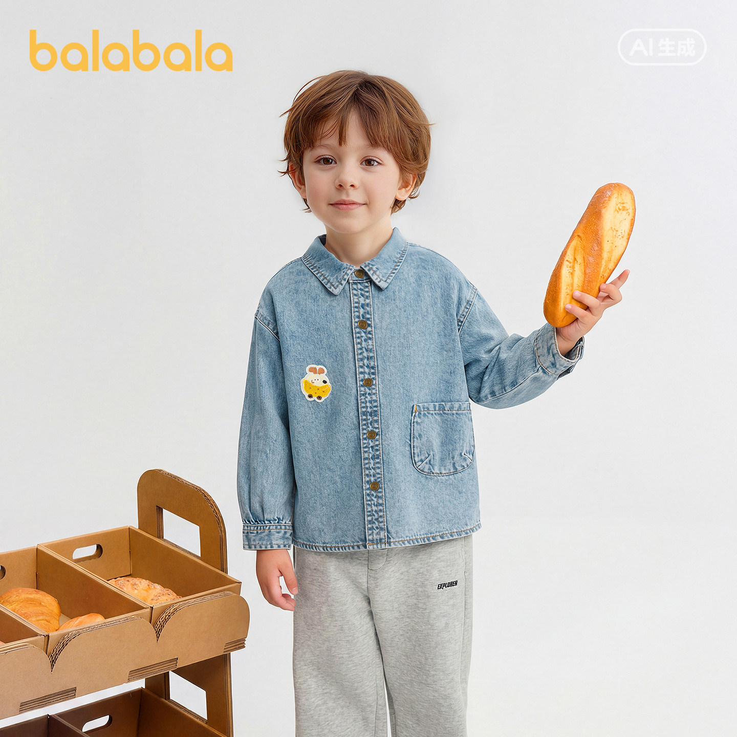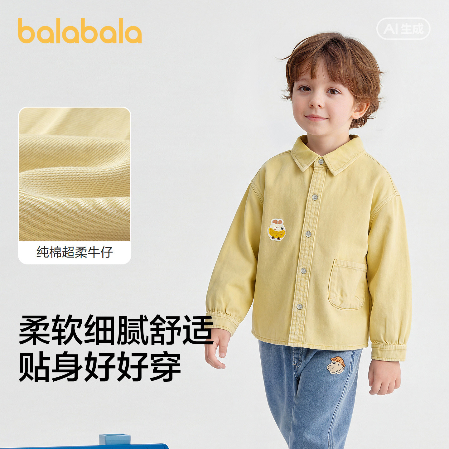【商场同款】巴拉巴拉儿童长袖衬衫男童2026新款春秋卡通绣花上衣