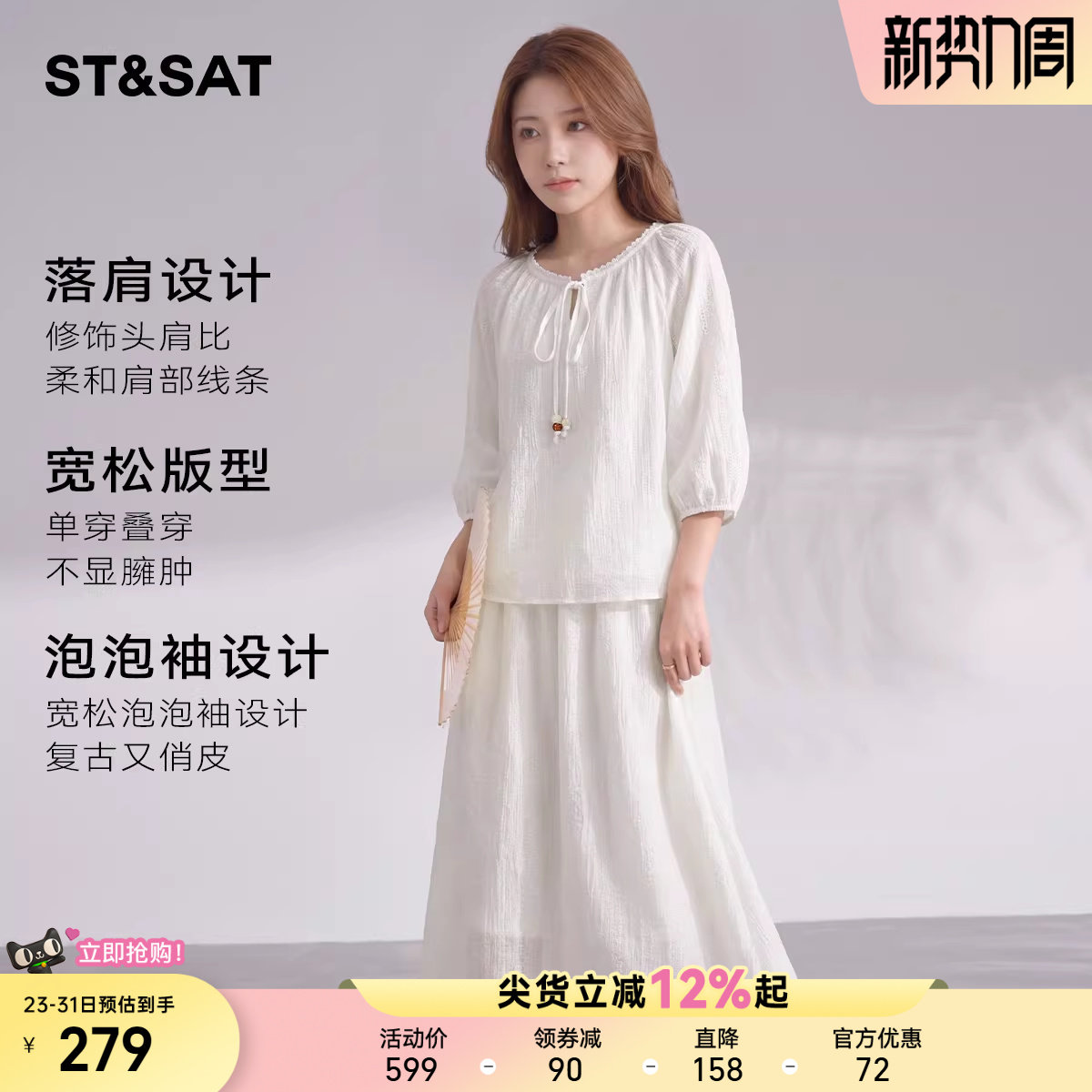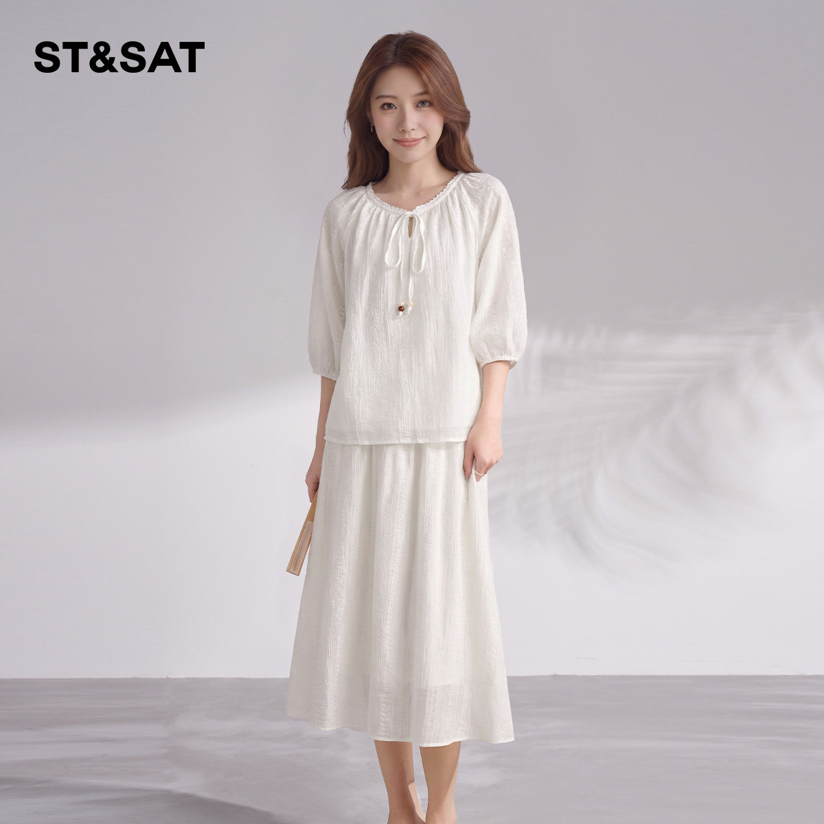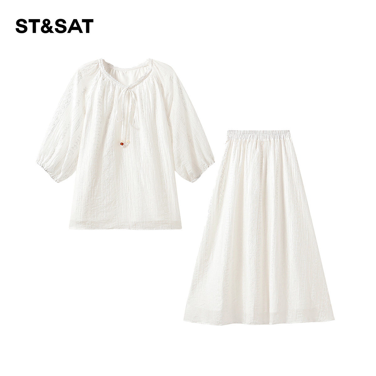 星期六天丝国风优雅随性中长裙女2026夏季新款简约气质蕾丝衫套装