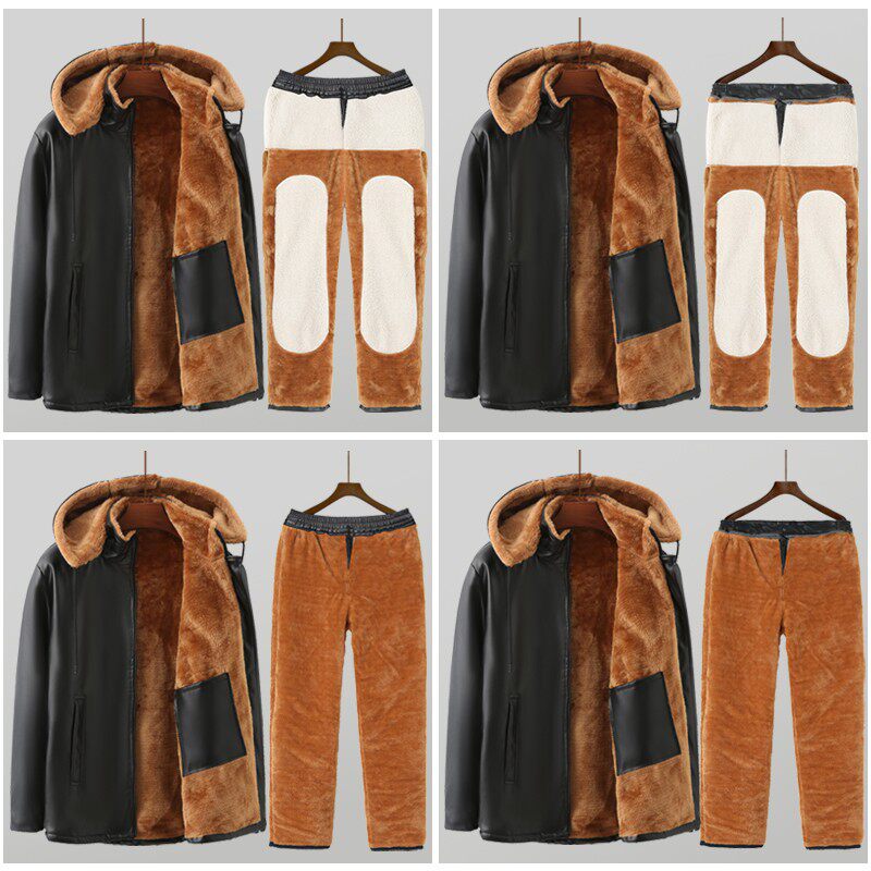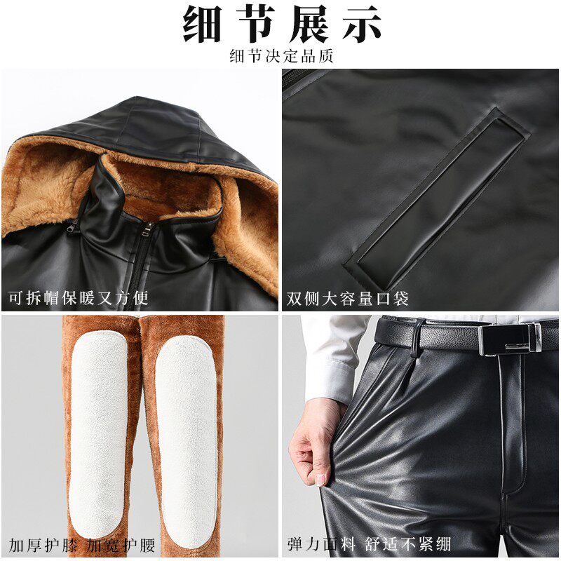 冬季款防风防水皮衣皮裤套装男士代驾摩托骑行服加绒加厚保暖外卖