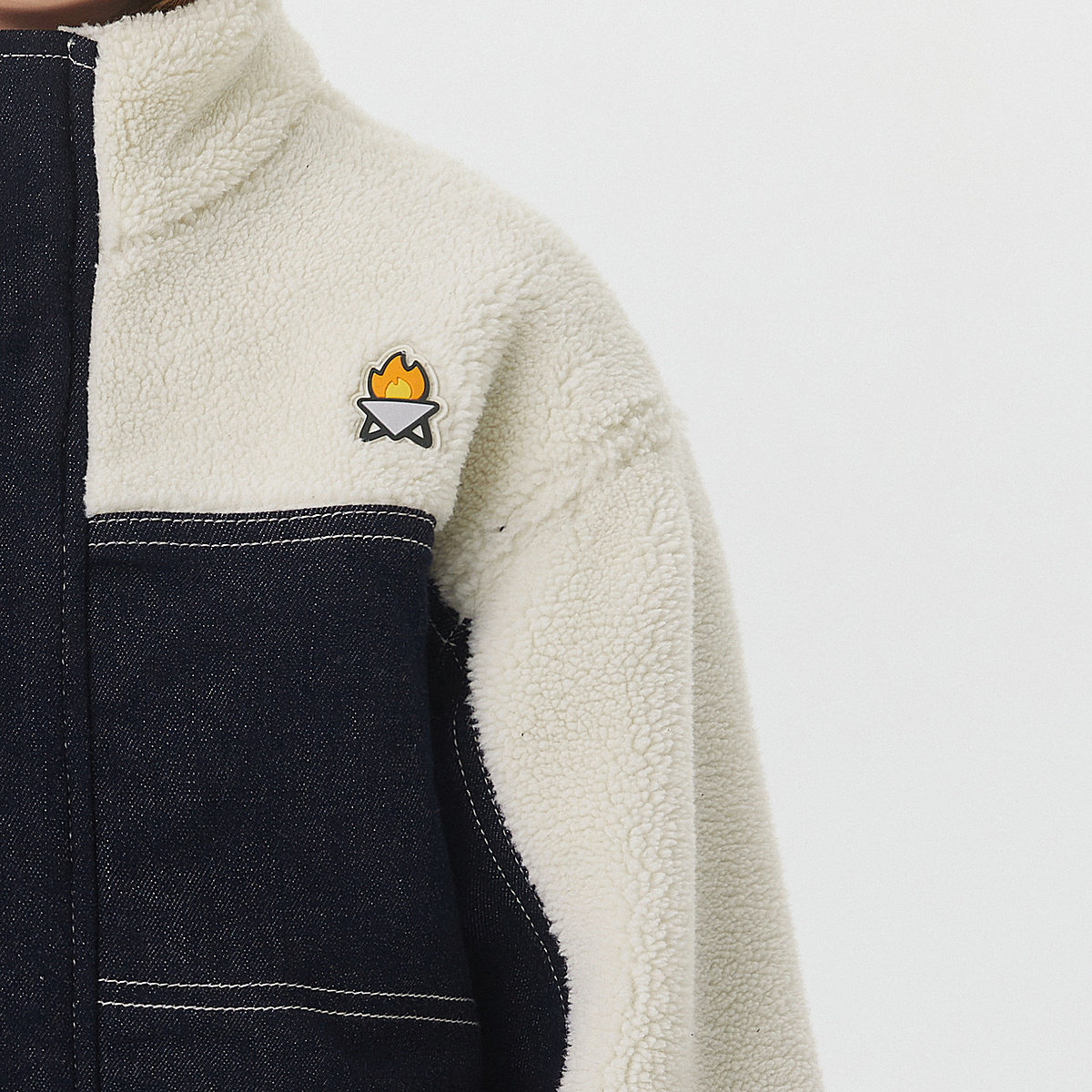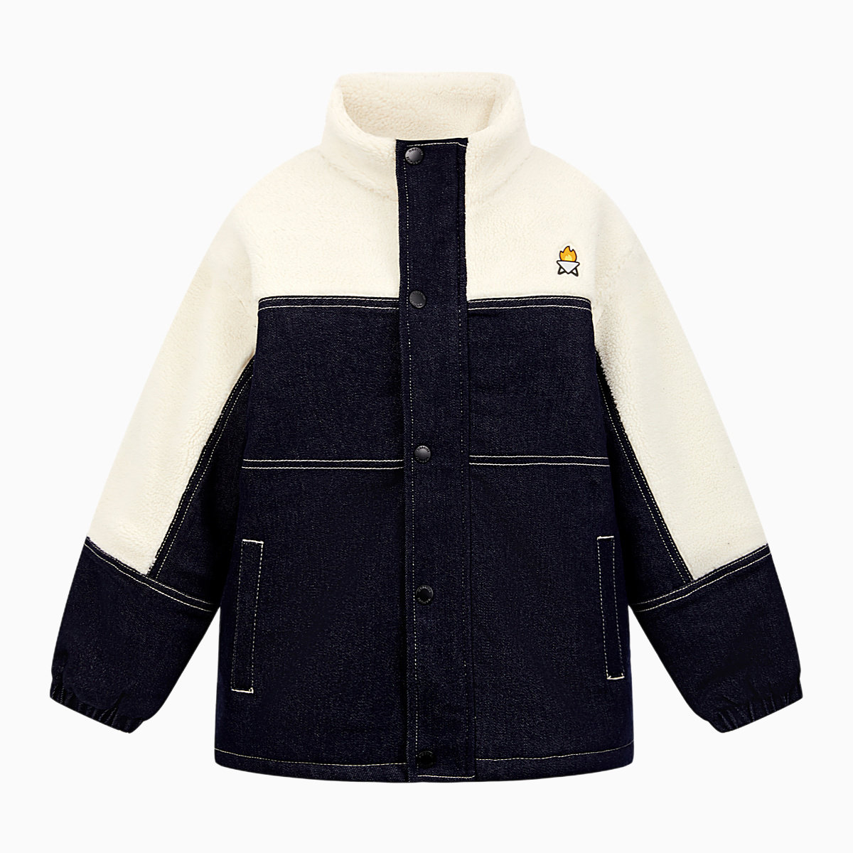 MQD童装男童牛仔加绒加厚拼接仿羊羔绒外套2