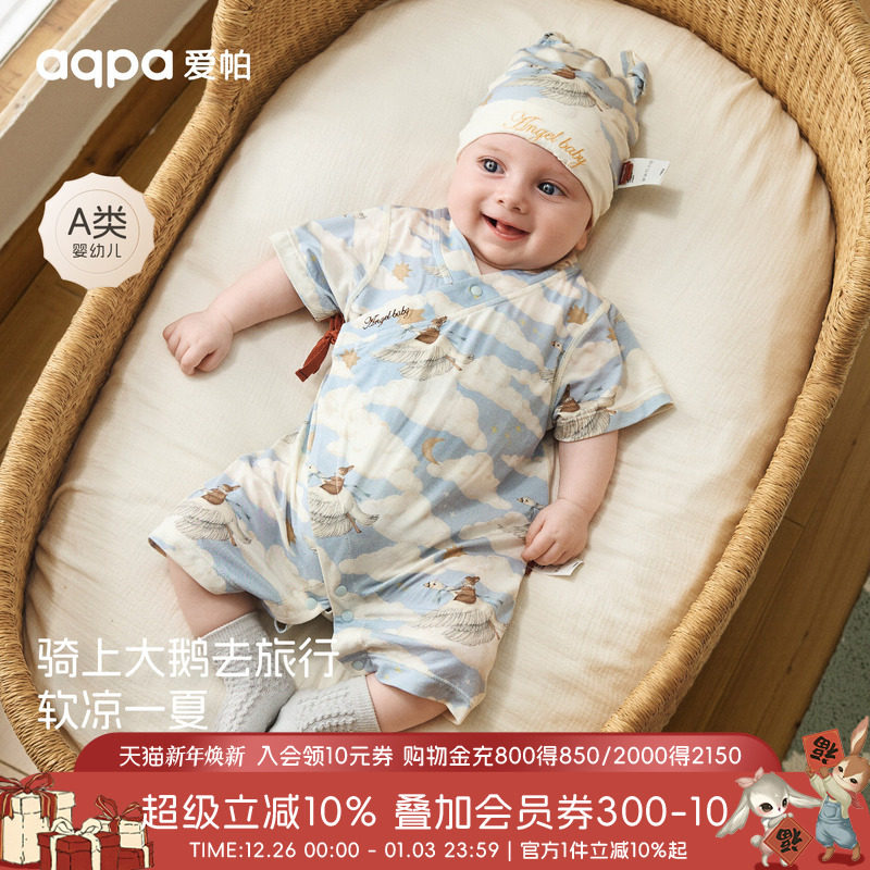 aqpa婴儿背心包屁衣莫代尔夏季宝宝连体衣新生婴儿衣服可爱小月龄