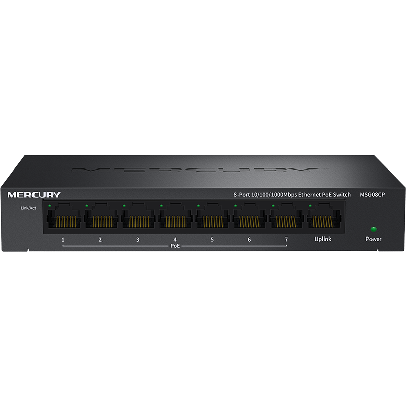 MERCURY水星 MSG08CP 8口千兆PoE交换机1000M网络分线分流器企业办公家用无线AP监控摄像头标准PoE供电器