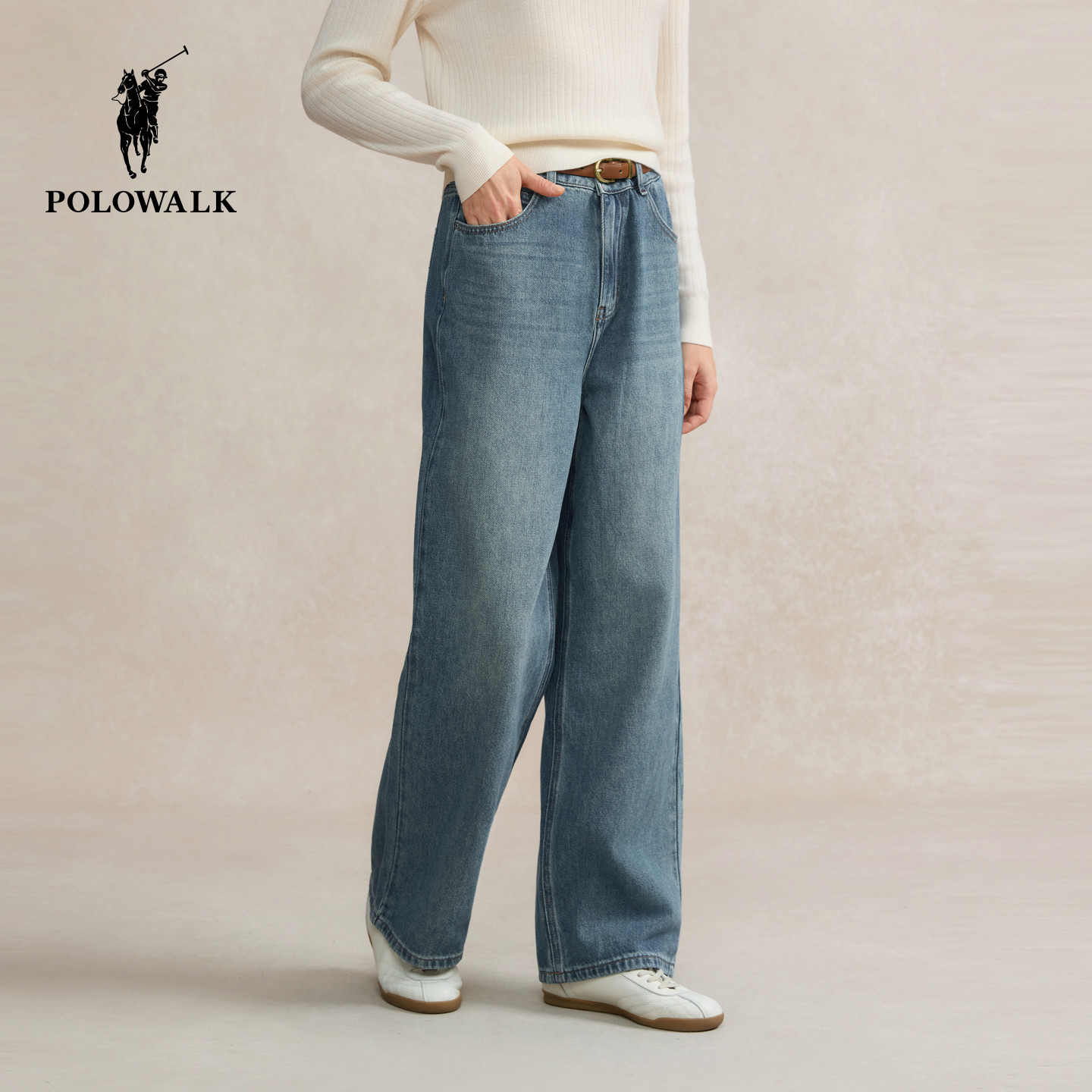 POLOWALK女式牛仔裤2026春季裤新品经典直筒显瘦女装宽松长裤子
