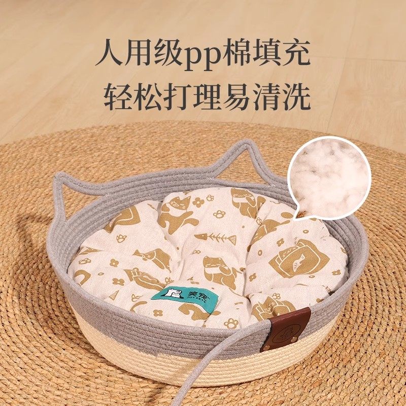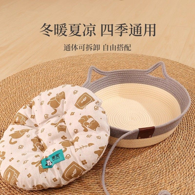 粗麻藤编猫窝狗窝四季通用编织猫咪用品小型犬宠物窝猫垫子可拆洗