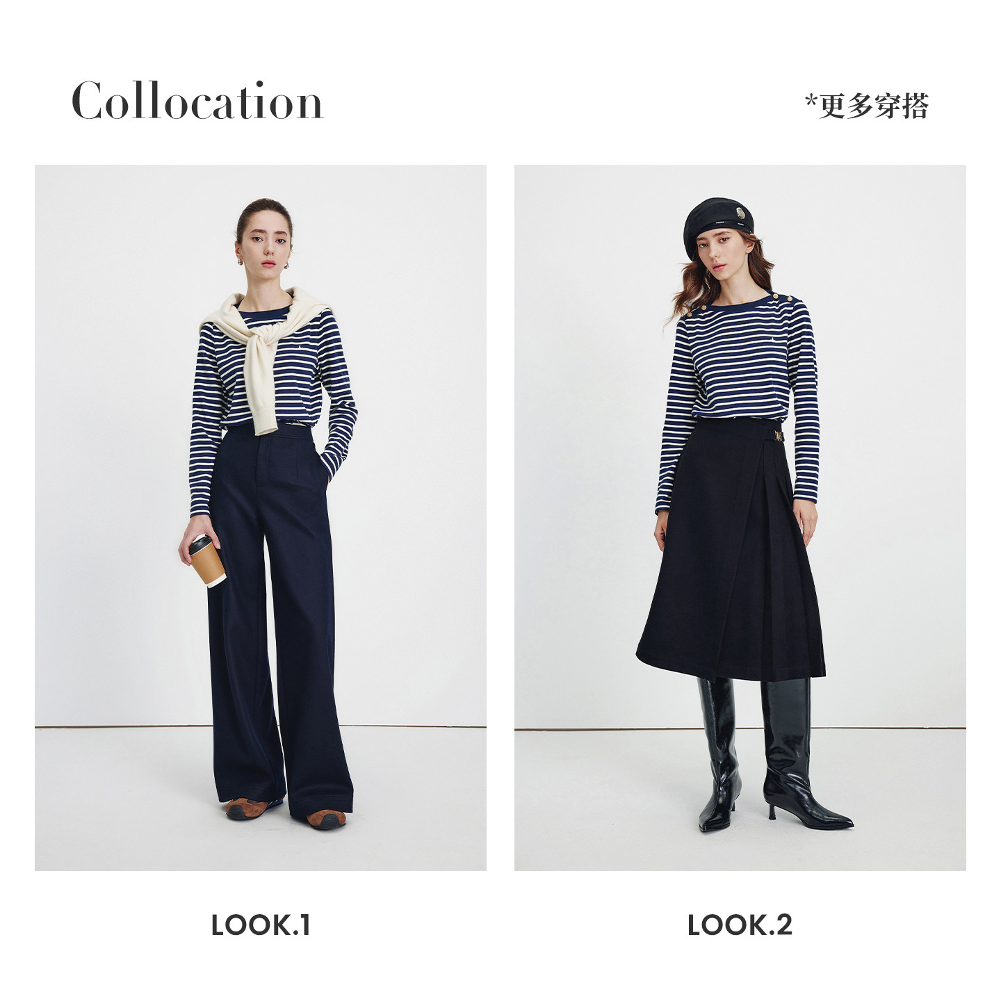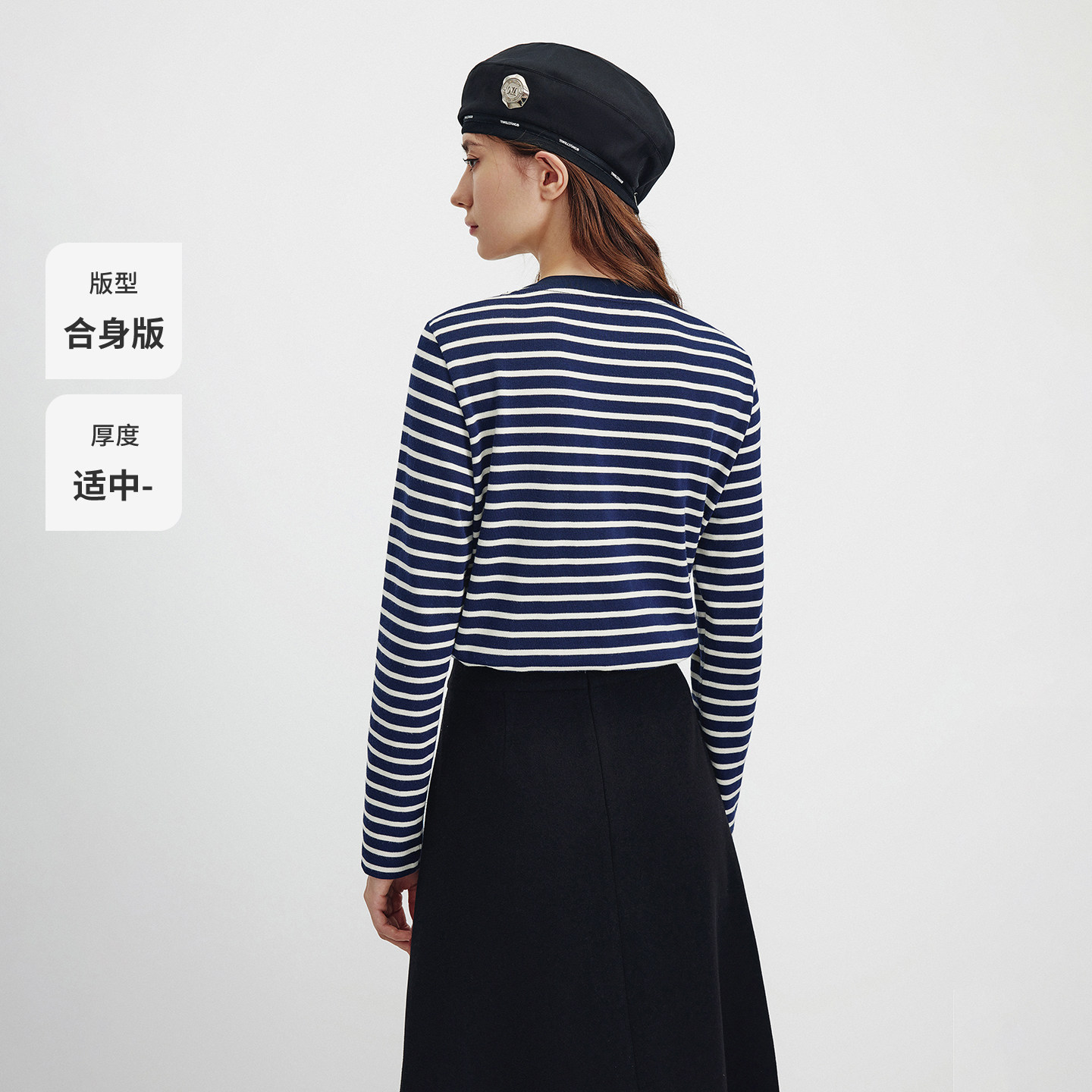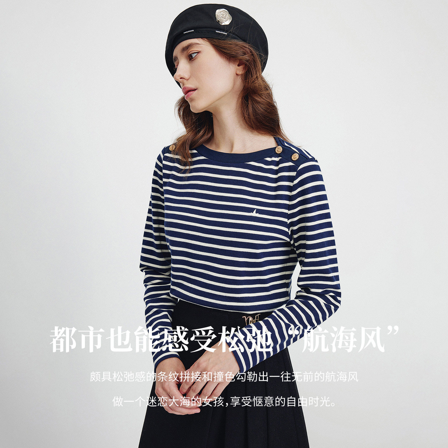 Navigare意大利小帆船色织条纹长袖T恤女2026春季纯棉一字领体恤