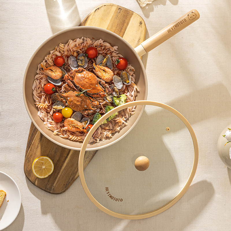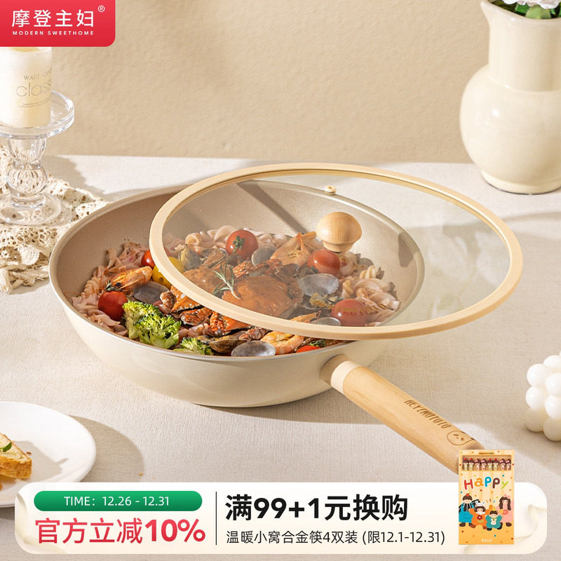 摩登主妇mototo熊猫不粘锅炒锅家用炒菜锅不粘电磁炉燃气灶平底锅