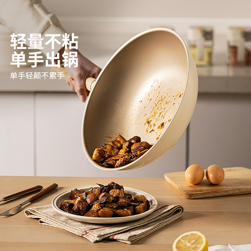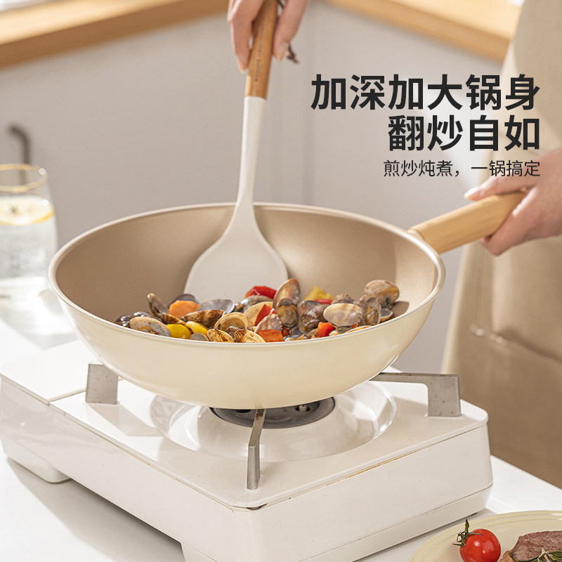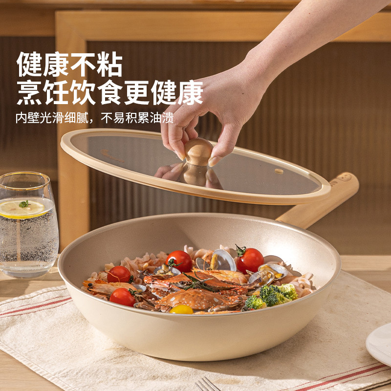 炊大皇无氟涂层不粘锅炒锅家用聚油不沾锅燃气电磁炉用钛锅炒菜锅