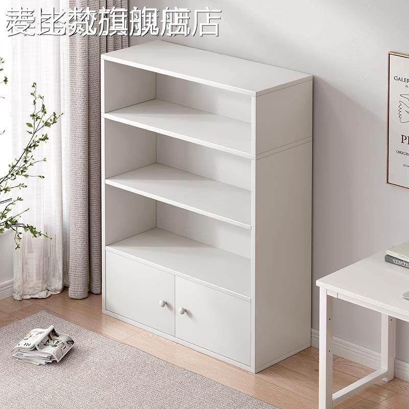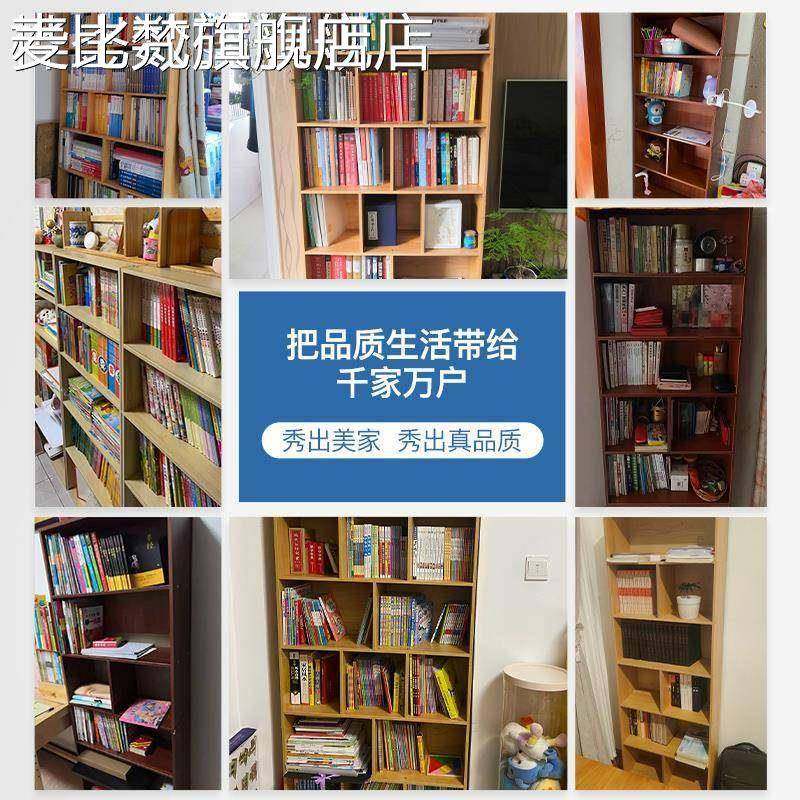 麦比梵书架小型置物架落地多层收纳架小柜子储物柜靠墙一体实木色矮书柜床笠拉车