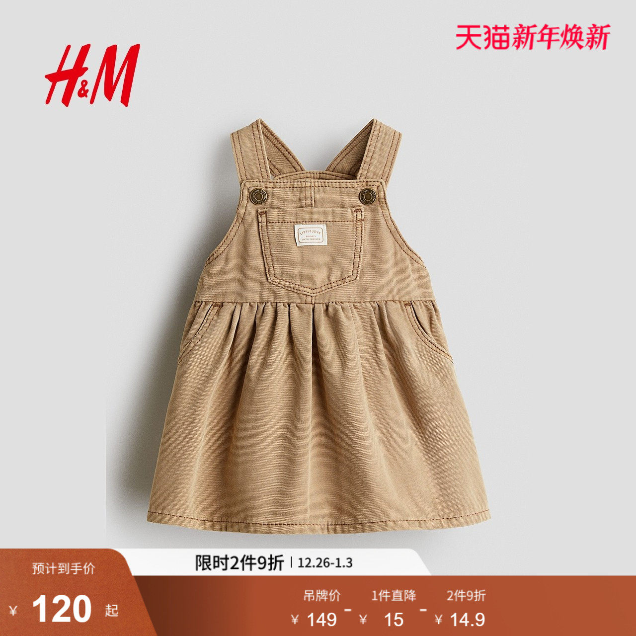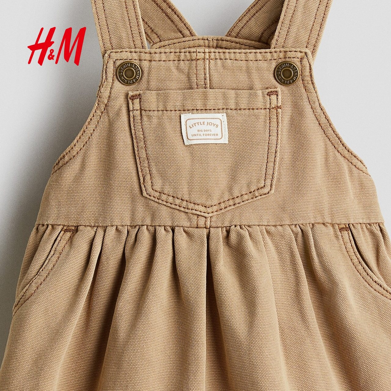 HM童装女婴宝宝2025冬季新款可爱斜纹棉布背带连衣裙1301729