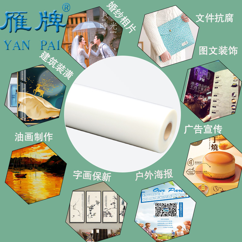 雁牌110热裱水晶膜PET钢化水晶膜照片广告影楼后期热裱水晶膜无框画晶瓷画装饰画照片热裱透亮高光水晶膜