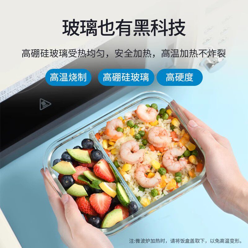 保鲜盒饭盒微波炉碗上班族密封餐盒玻璃食品级分隔冰箱收纳耐热