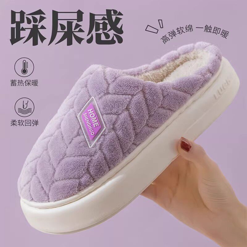 红豆踩屎感棉拖鞋女士秋冬季室内家居2025新款毛绒保暖情侣棉拖男