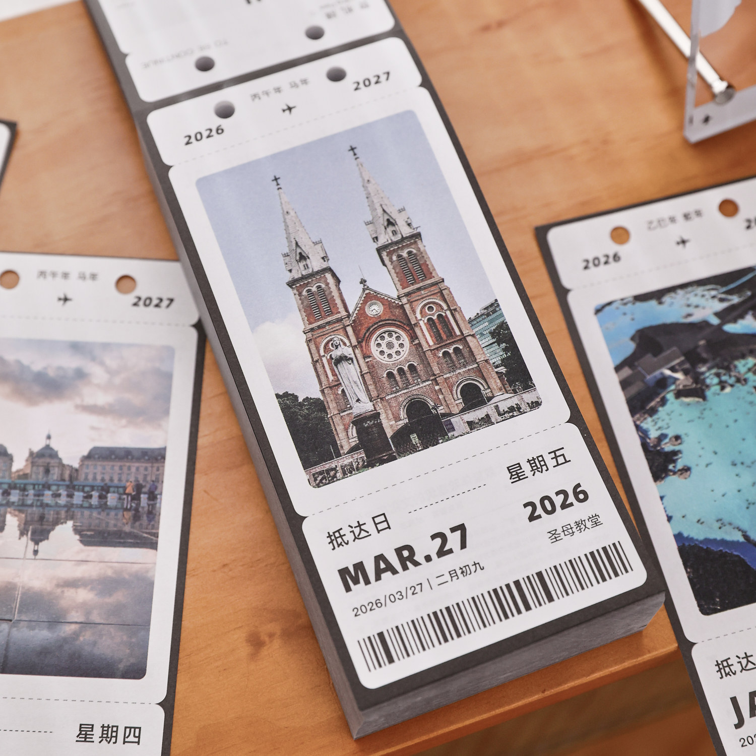 盐岛时光 2026年票据旅行日历 带你一起去看世界 可撕台历摆件