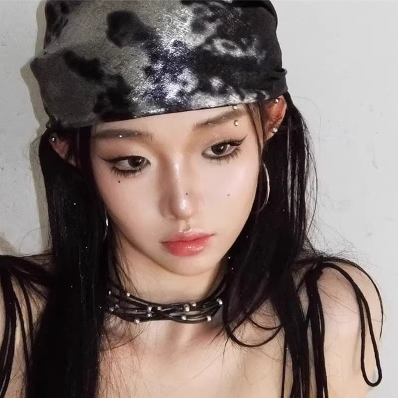 2025新款千禧y2k辣妹小丝巾头巾女美式街头音乐节潮酷包头三角巾