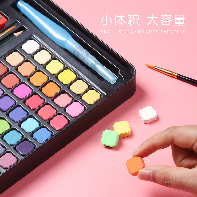 固体水彩颜料粉饼套装36色48铁盒初学者跨境10件套儿童DIY手绘