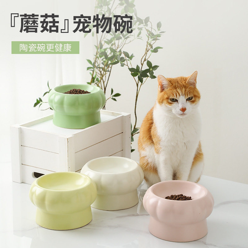 批发陶瓷猫食盆猫咪可爱蘑菇造型狗狗碗水碗保护颈椎双碗宠物碗