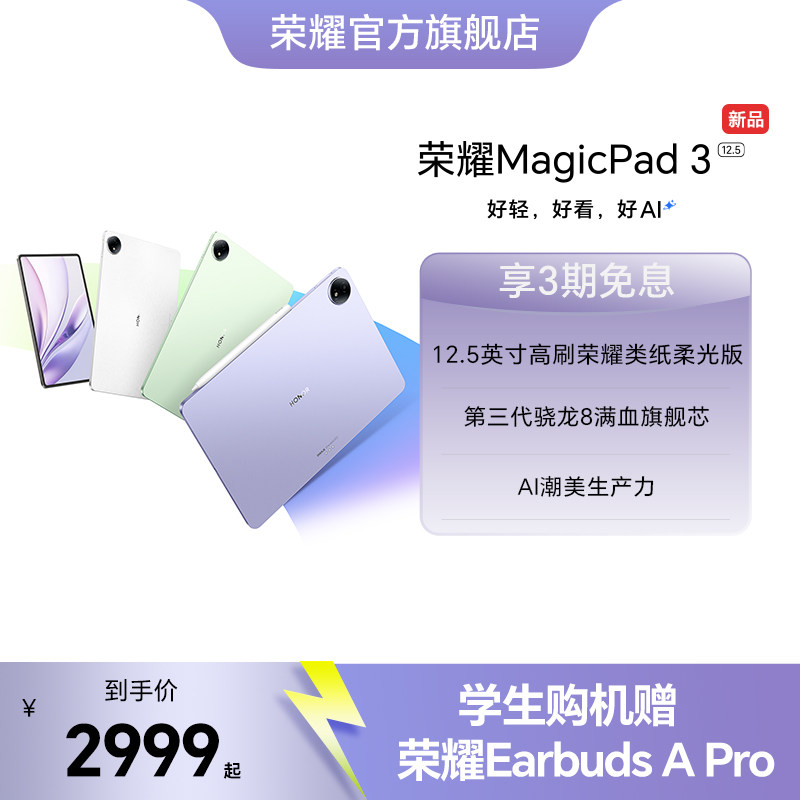【政府补贴15%】HONOR/荣耀MagicPad3 12.5英寸 平板电脑 荣耀类纸柔光屏 多彩轻薄平板办公游戏平板官网官方