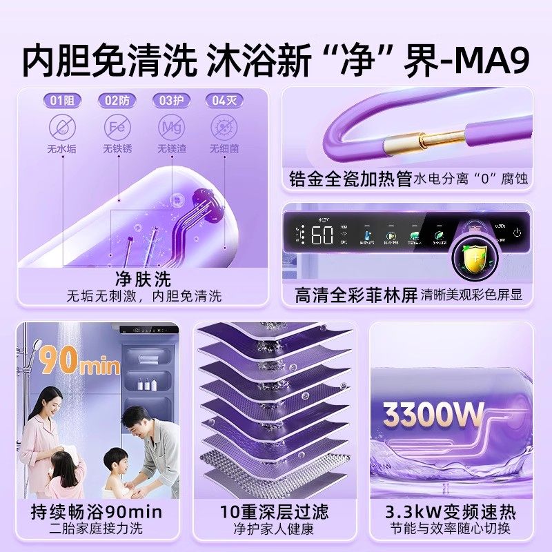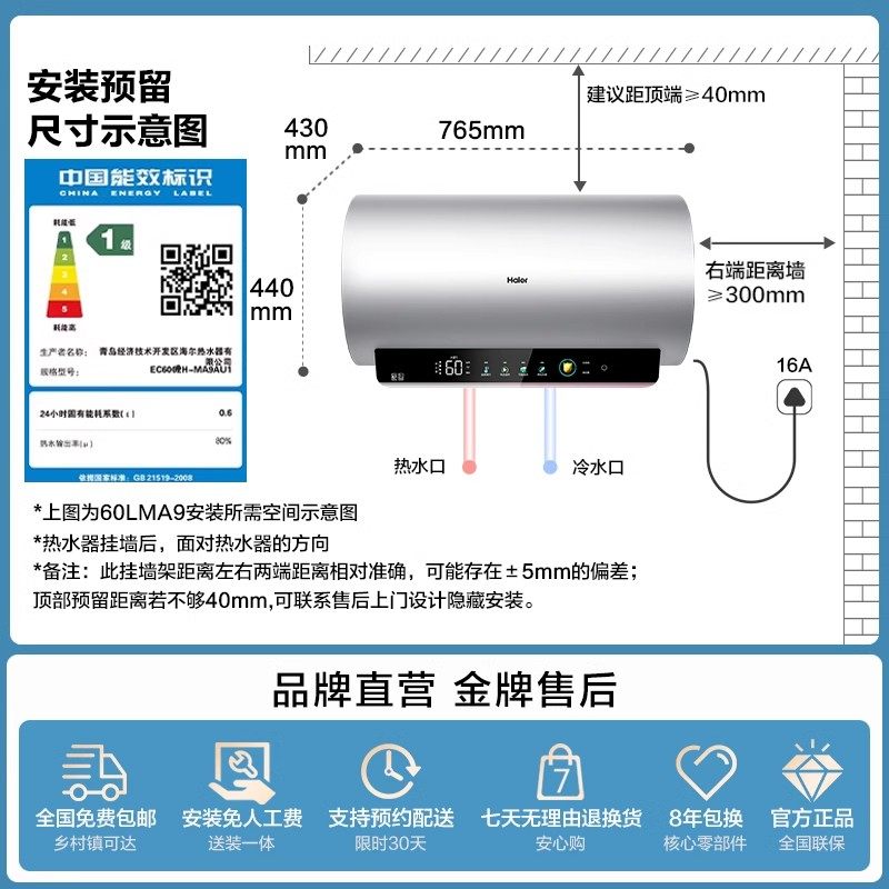 政府补贴海尔电热水器变频速热免清洗一级能效60升80L家用新款MA9