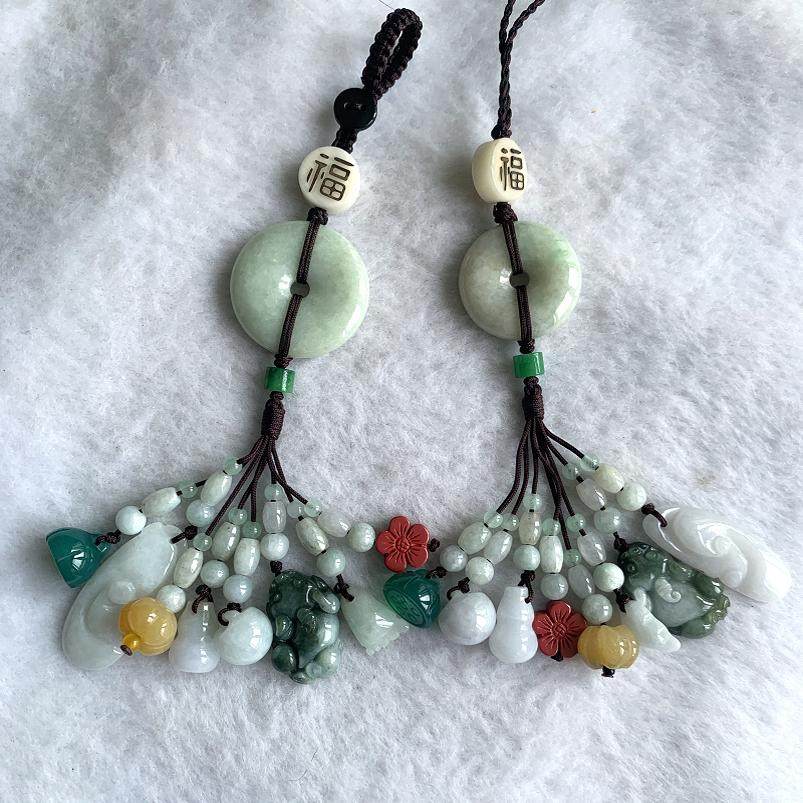 天然翡翠玉水滴平安扣钱袋多宝汽车钥匙扣手机链挂件车内挂坠