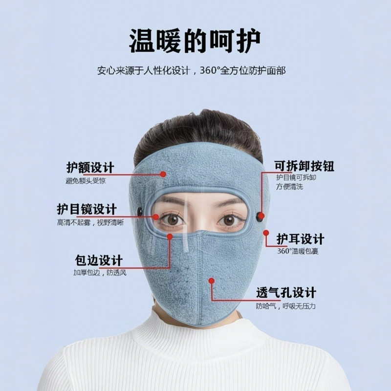 冬季保暖大面罩护目全脸防寒风加厚口罩男女户外骑行防尘护耳护脸