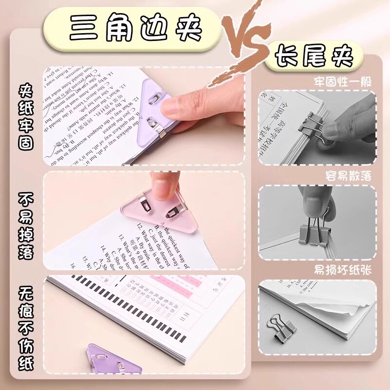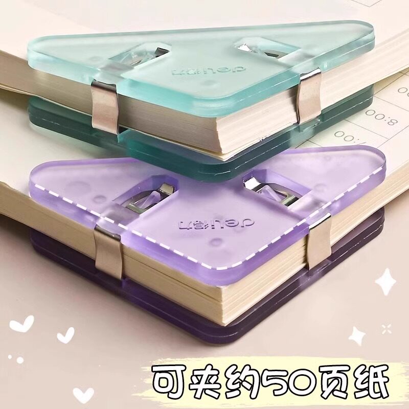 得力三角夹试卷夹边角夹文件夹小学生收纳整理票夹资料夹子文具卷子夹书夹办公用品体检票据发票长尾夹手账夹