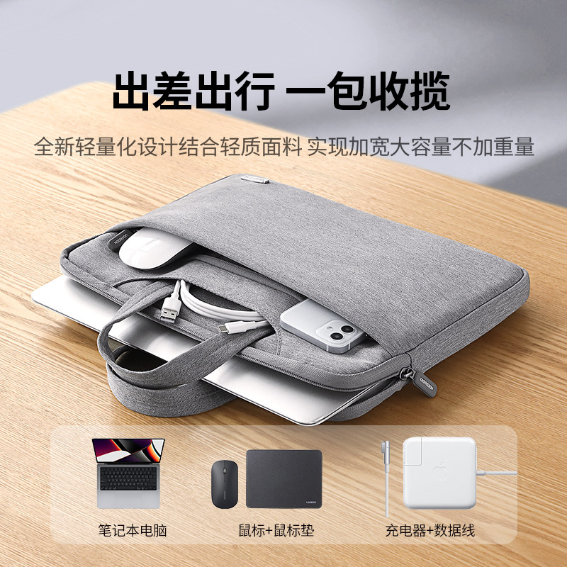 绿联笔记本电脑包手提包公文包适用macbook air13寸matebook14寸16寸小新13/15寸新款男防水保护套