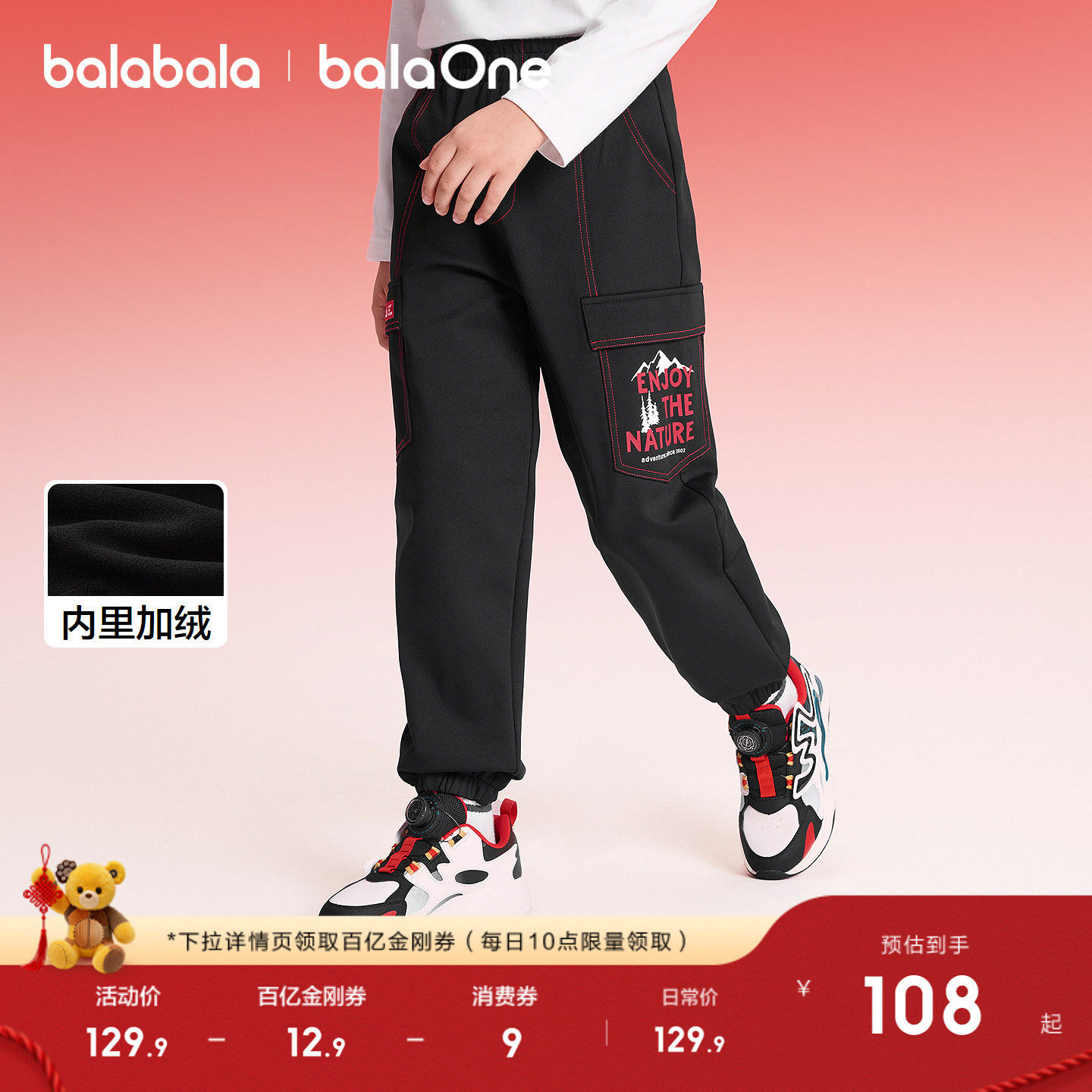 巴拉巴拉童装儿童加绒裤子男女童2026新款春秋装宽松拜年服束脚裤