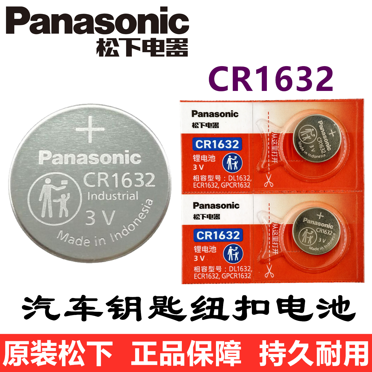 原装进口松下CR2032/CR2450 /CR1632/CR20253v纽扣电池汽车钥匙遥控器型锂电池电子适用于奥迪大众奔驰宝马等