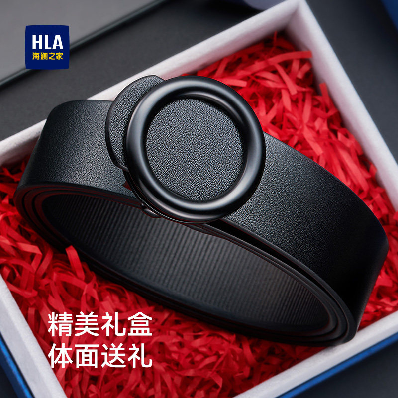 海澜之家男士皮带无牙自动扣头层牛皮腰带新款裤带西服配饰礼盒装