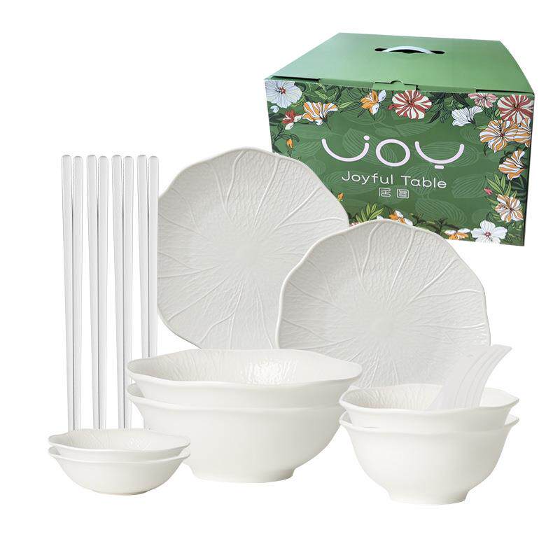 松发瓷器2025新款荷纹套装陶瓷碗具釉下彩家用餐具套装盘吃饭专用