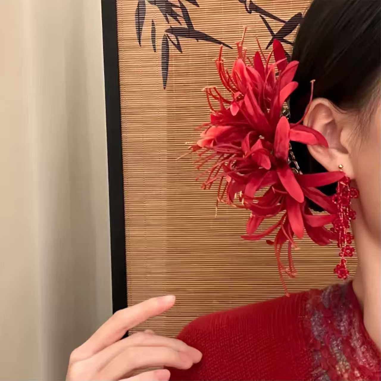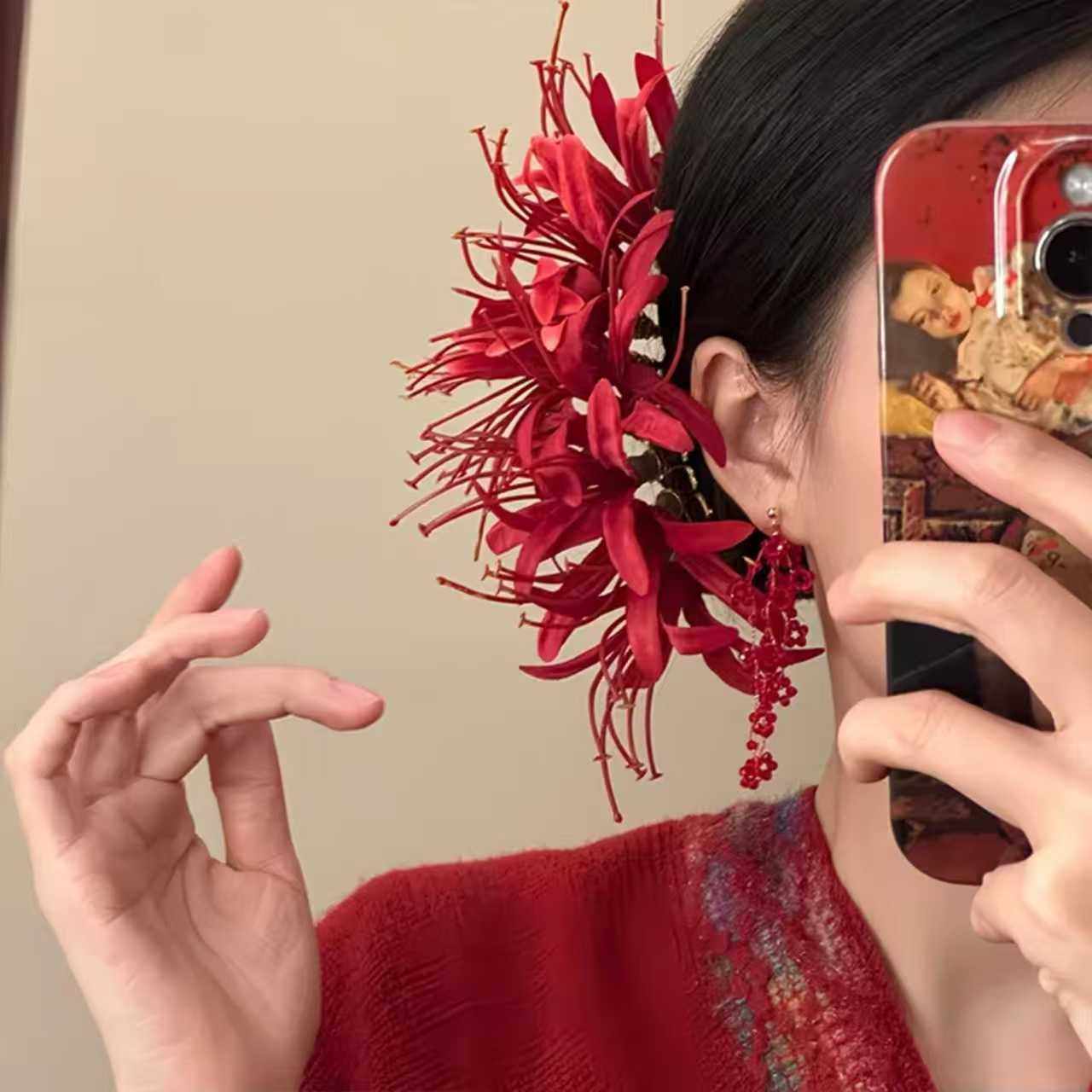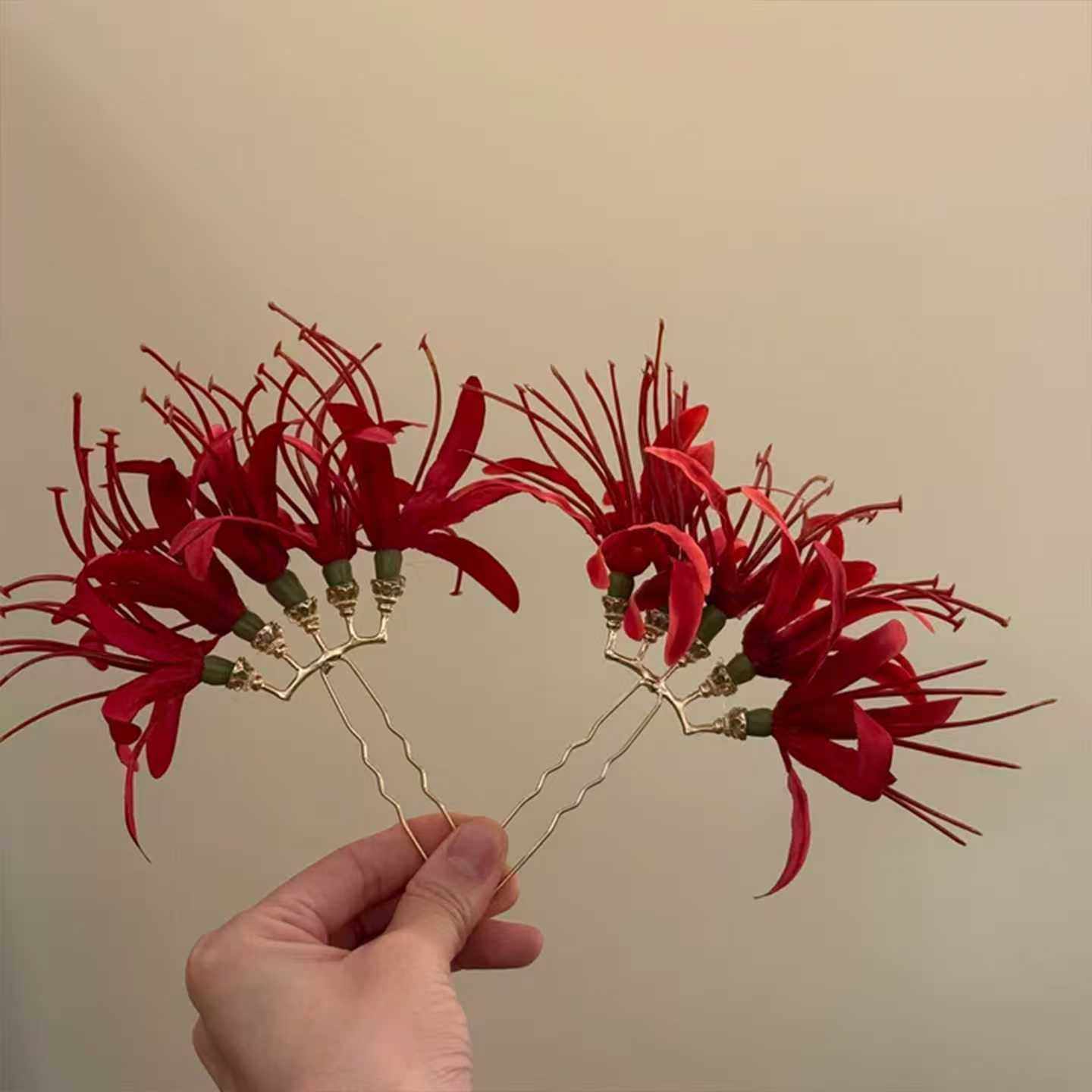 「浪漫不渝」森系超仙红色彼岸花朵发簪女头花新中式头饰