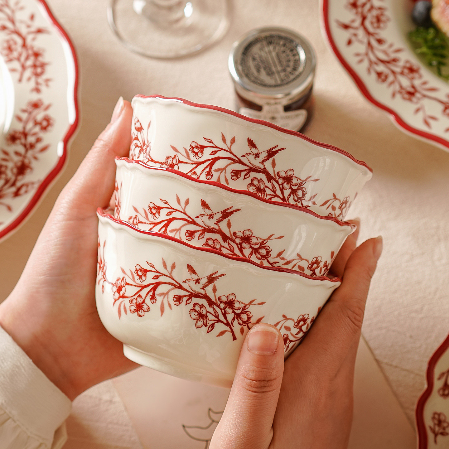 高档碗碟餐具陶瓷新婚礼物送新娘红色碗盘筷套装乔迁新居结婚礼盒