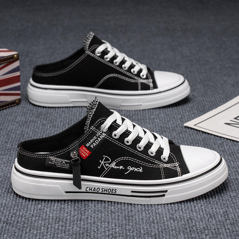 帆布男款春夏季透气百搭懒人一脚蹬无后跟半拖鞋运动休闲百搭潮鞋